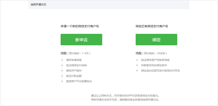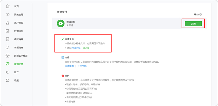 目前小程序只支持微信自有支付,所有使用商家版小程序的商家,还需要开通微信支付;微信支付开通的流程与微信公众号上的流程一致。