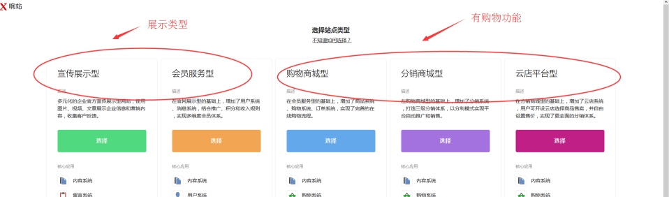 根据网站需要,选择相应的站点类型(站点类型选择后可更改,无论哪个类型,创建站点都是免费的)。