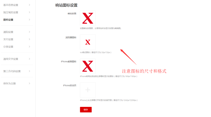 前往网站后台左侧导航栏 > 站点 > 站点设置 > 图标设置。