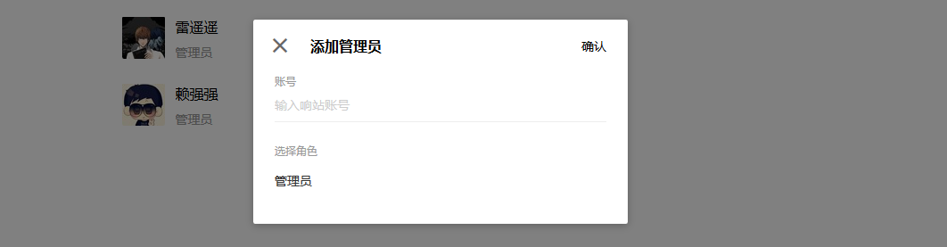 添加管理员:只需填写管理员的响站账号,并选择角色。添加完成后,该响站账号将拥有其对应的角色权限。