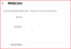 请通过后台导航栏 > 站点 > 站点设置 > 支付方式设置等操作打开支付方式设置页。开启银联支付,点击设置接口,然后在打开的银联支付接口设置页上传银联证书并填写密码和商户号。