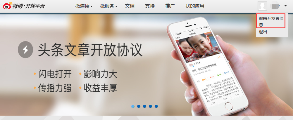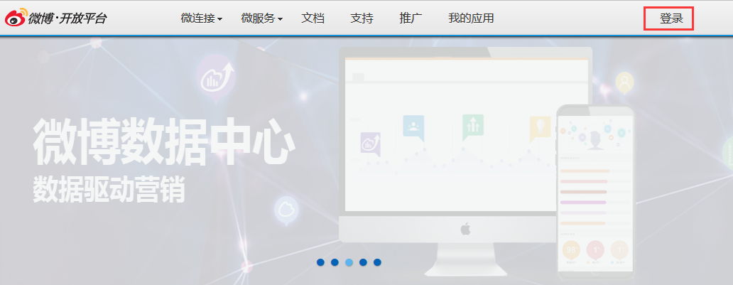 登录微博开发者页面(http://open.weibo.com/)。