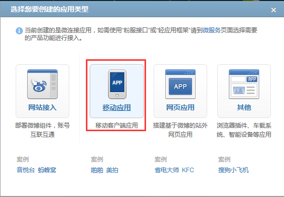 创建应用时,开发者需要谨慎选择应用对应平台,不同的平台建议使用不同APPKEY开发。
