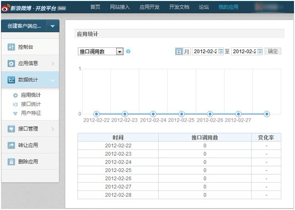 您可以通过“我的应用 – 数据统计”页面查看您的应用的相关统计数据,包括应用统计、接口统计、用户特征统计等信息。