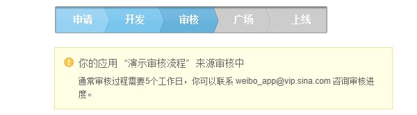 应用如果希望在通过接口发出的微博信息中显示来源地址,则需要进行文案审核申请。默认显示“未通过审核应用”。