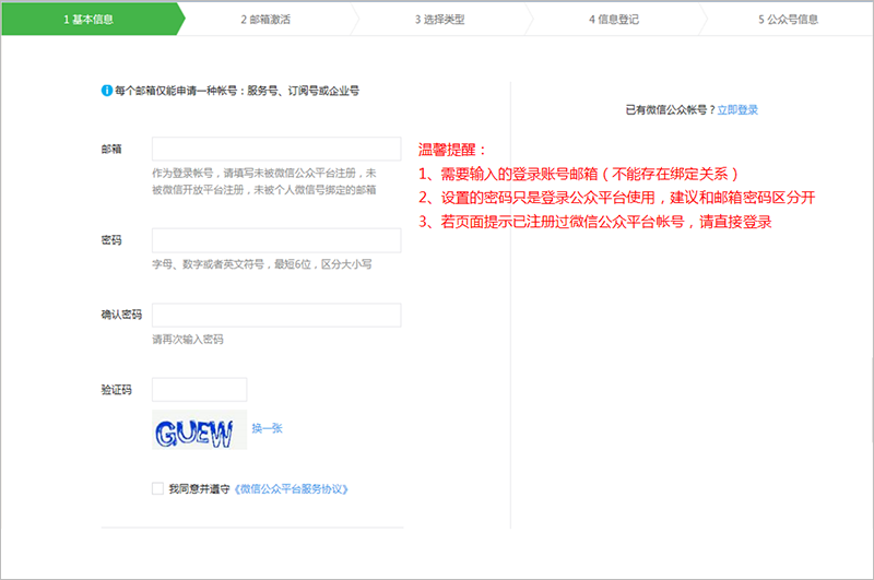 登录微信公众平台(https://mp.weixin.qq.com/),点击【立即注册】。