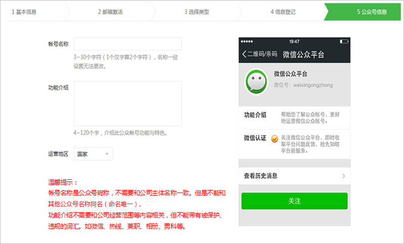 3、验证通过前,暂时无法使用公众平台的群发功能和高级功能等;