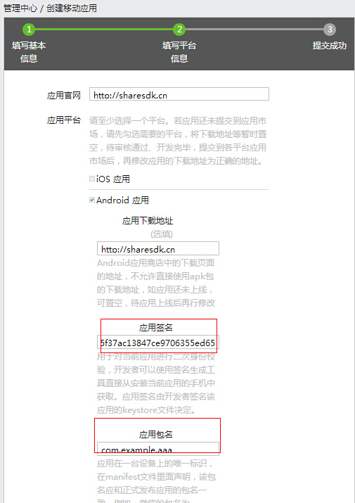 Android包名:Android包名格式为com.xiangzhan.您网站的二级域名。例如,如果您网站的二级域名是http://microsoft.xiangzhan.com,您的Android包名便是com.xiangzhan.microsoft。
