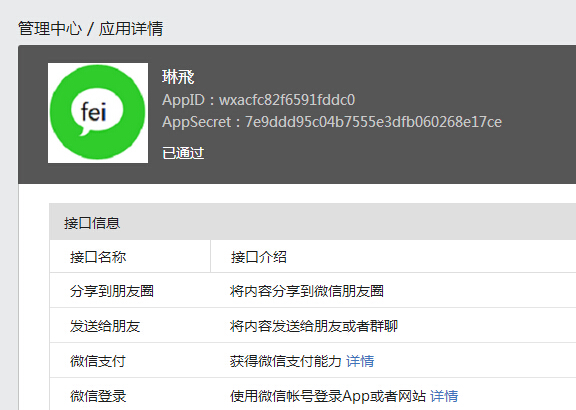 得到如图所示的AppID和AppSecret