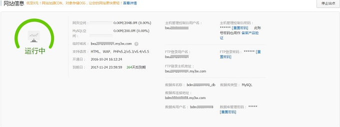 点击管理后可在页面中的账号信息中查看主机管理控制台账户及密码,如密码忘记也可点击 重置密码 进行修改。