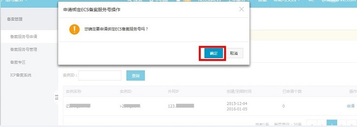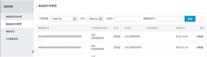 确定后可在备案服务号管理中查询申请的服务号信息。