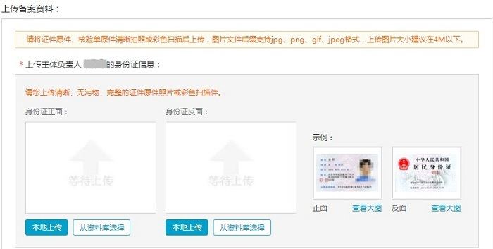 初审通过后,登陆备案系统申请幕布,收到幕布后自行拍照并上传照片审核(拍照前请先查看拍照说明,并避免身着红色或蓝色上衣进行拍照)。