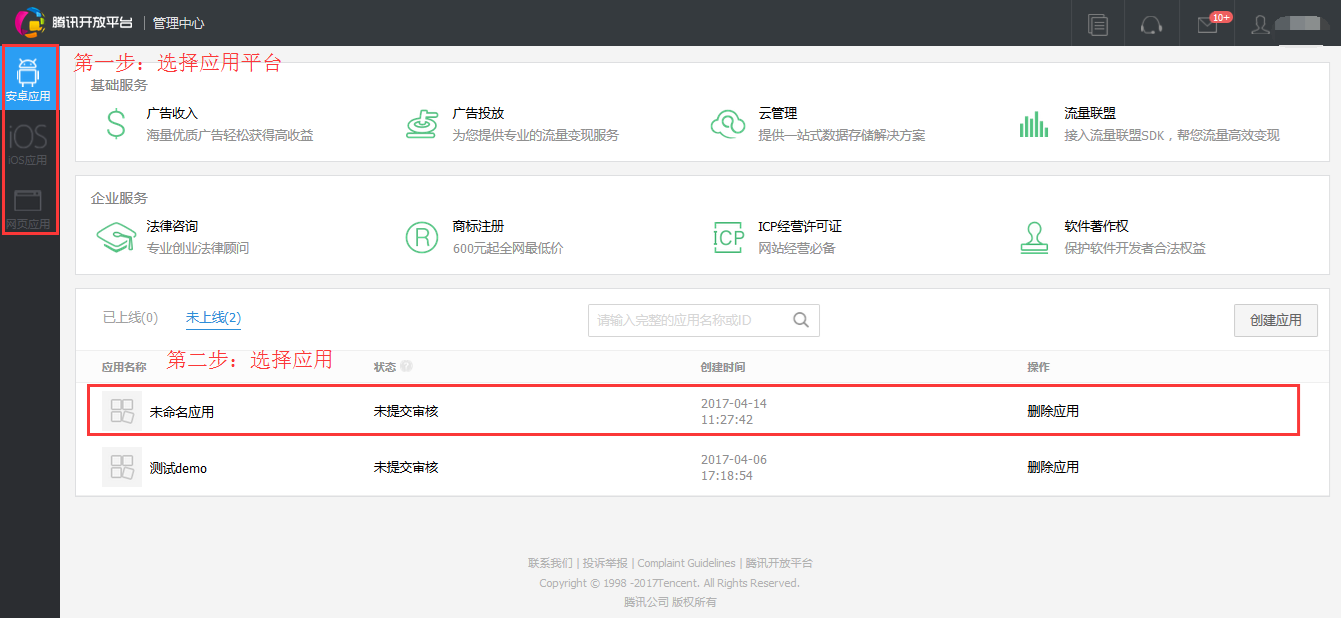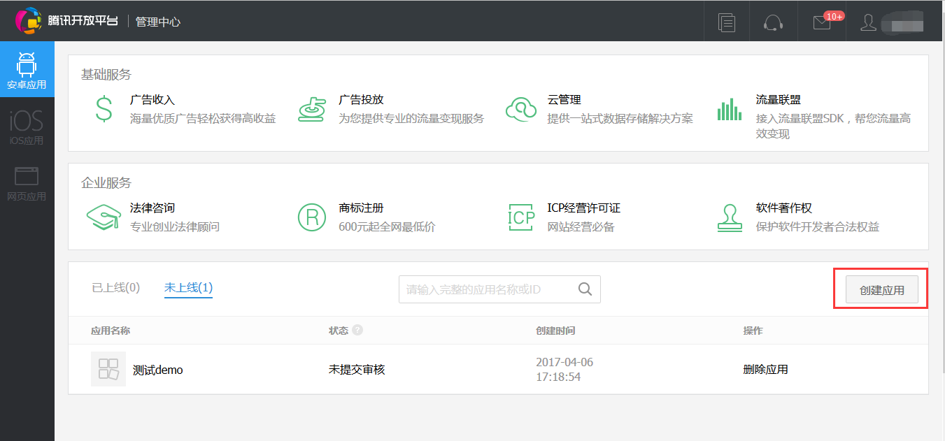 在网上搜索腾讯开放平台,进入开发者平台网站;