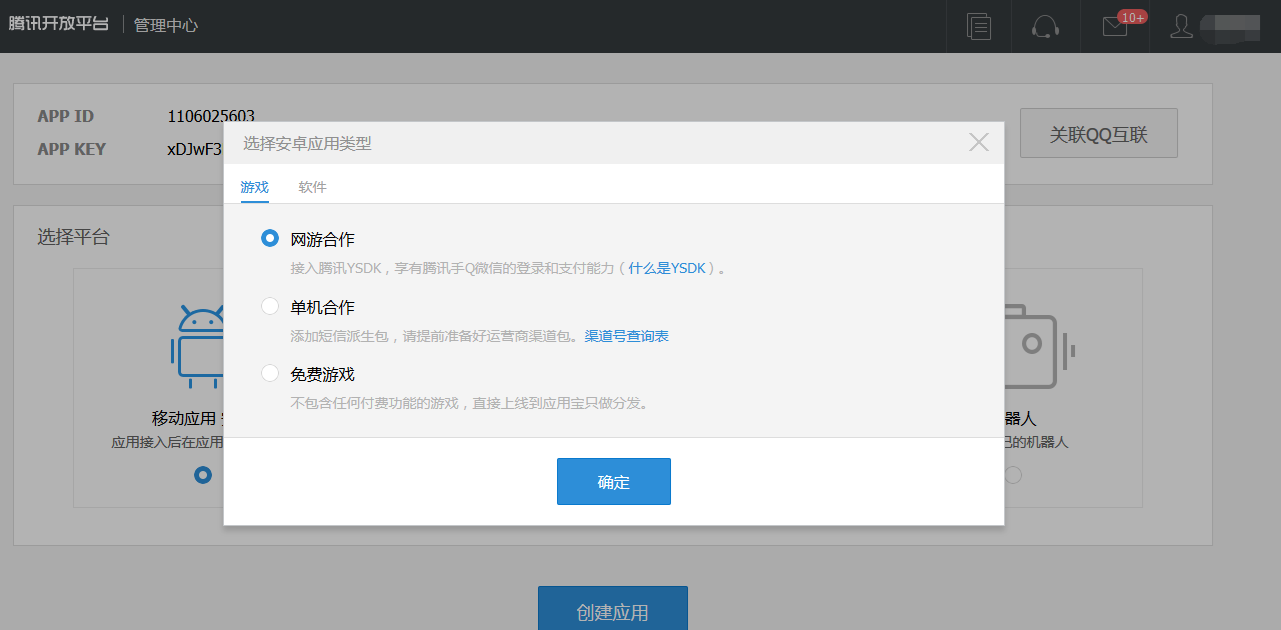 如果您已经有腾讯开发者账号,在登录腾讯开放平台(open.qq.com)后,点击【管理中心】,进入管理中心。