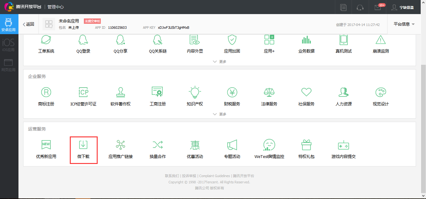 在应用管理页面中,拖动到最下方,选择【微下载】,在微下载中填写相应链接。