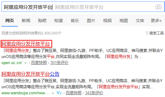 在网上搜索【阿里应用分发开放平台】,进入开发者平台网站;