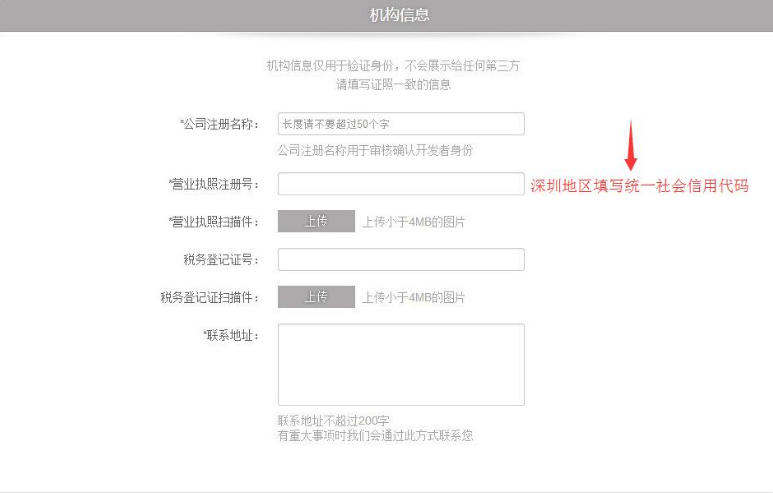 1、营业执照扫描件需提交“营业执照扫描件” 或“组织机构代码证”(深圳地区企业请填写“统一社会信用代码”) 属于必填项