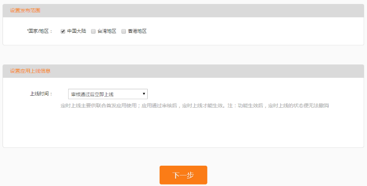 默认为立即上线,如果您想尽快让您的应用上线则无需修改。